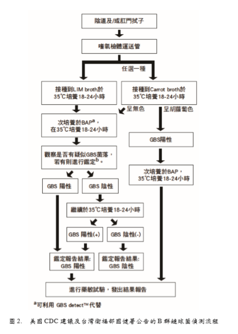 from CDC, 2010. MMWR Recomm Rep 2010; 59:1-32. 4. 衛(wèi)生福利部國民健康署。孕婦乙型鏈球菌篩檢補助