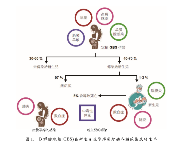 癥及肺炎(圖1)[1, 2],美國疾病控制與預(yù)防 中心(Centers for Disease Control and Prevention, CDC)建議懷孕35~37周之婦女需進行陰道
