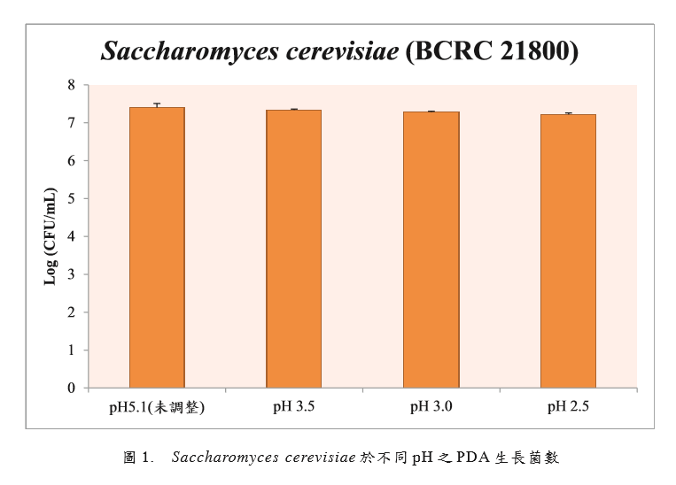 產(chǎn)生而誤判檢測結(jié)果。本研究以酸液調(diào)整PDA之pH值使乳酸菌在酸化PDA中不生長,而維持霉菌及酵母 菌之生長活性。研究結(jié)果顯示在pH 2.5~3.5環(huán)境下,乳酸菌在PDA無法生長,但霉菌及酵母菌不受低pH 環(huán)境影響,因此吾等認(rèn)為利用酸化PDA檢測乳酸菌食品中的霉菌及酵母菌將更為準(zhǔn)確。