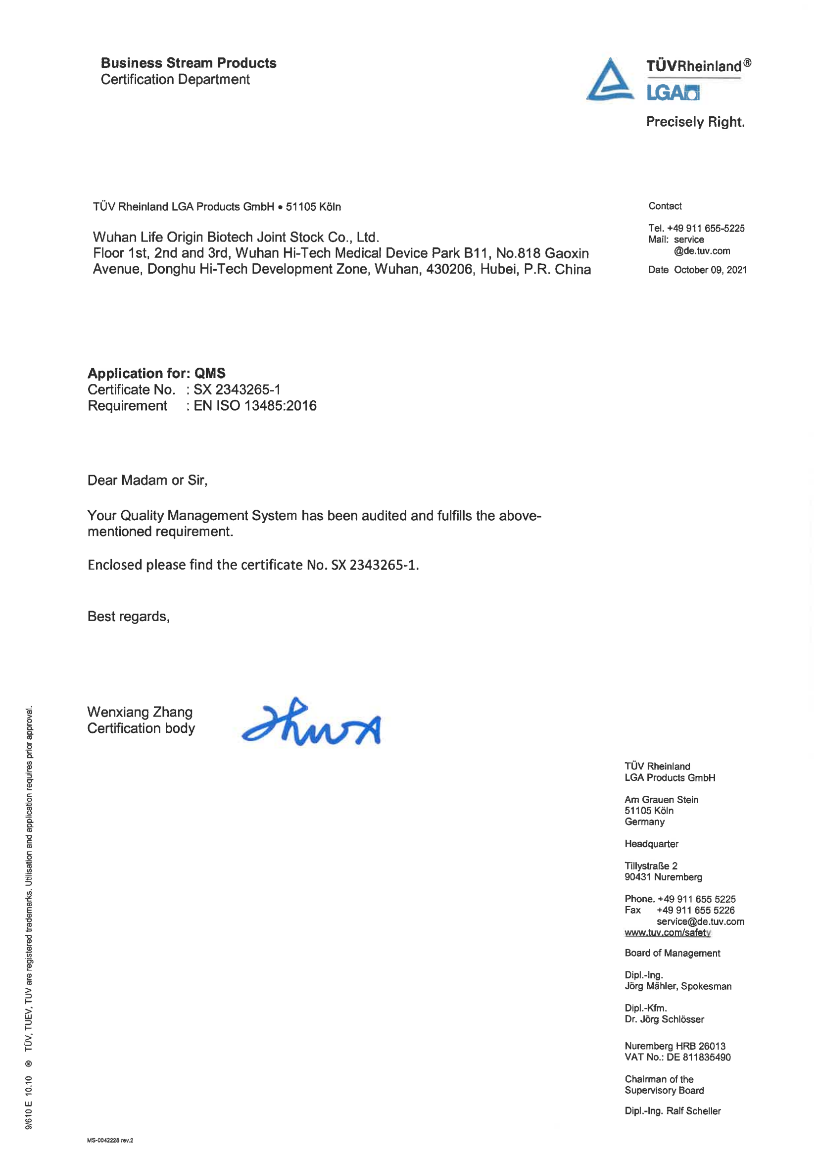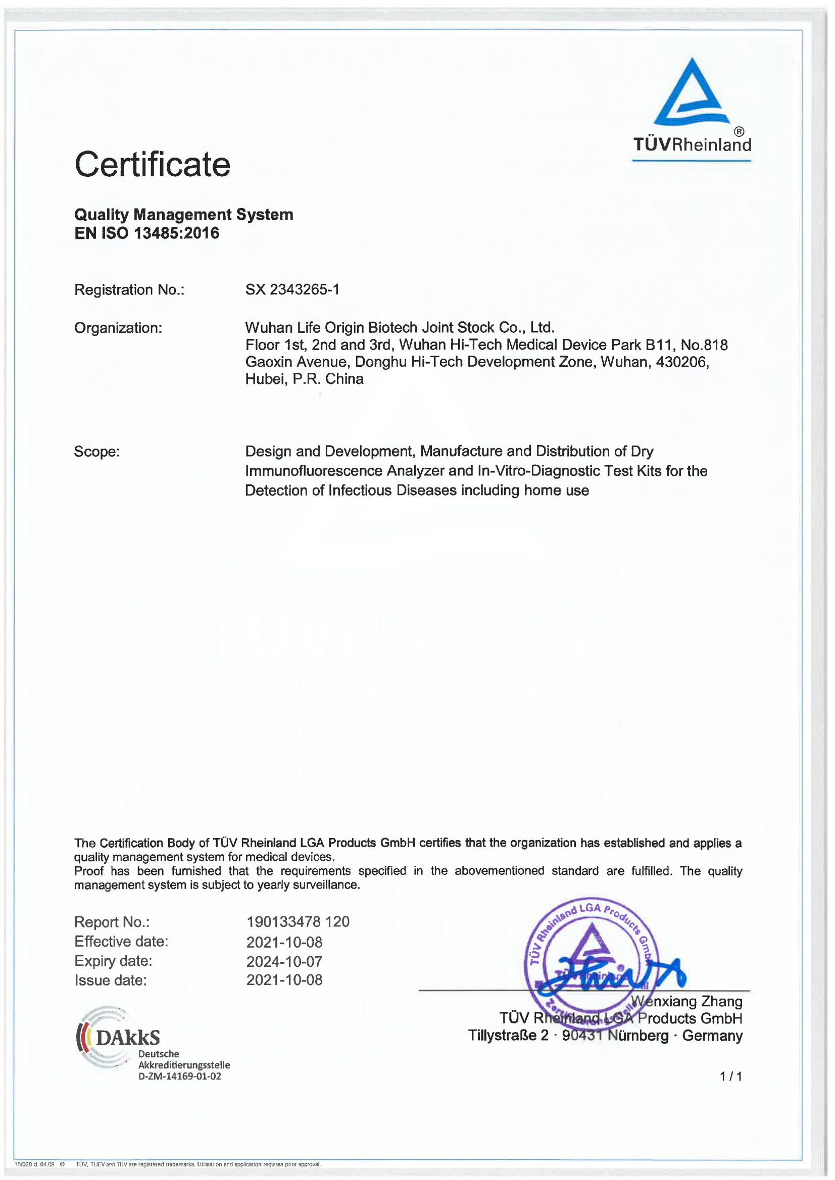 生之源生物科技股份有限公司于近日順利獲得德國(guó)南德意志集團(tuán) (TÜV SÜD)EN ISO13485:2016的現(xiàn)場(chǎng)認(rèn)證審核,已收到證書(shū)。為生之源打造全球診斷檢驗(yàn)服務(wù)提供有力的幫助!