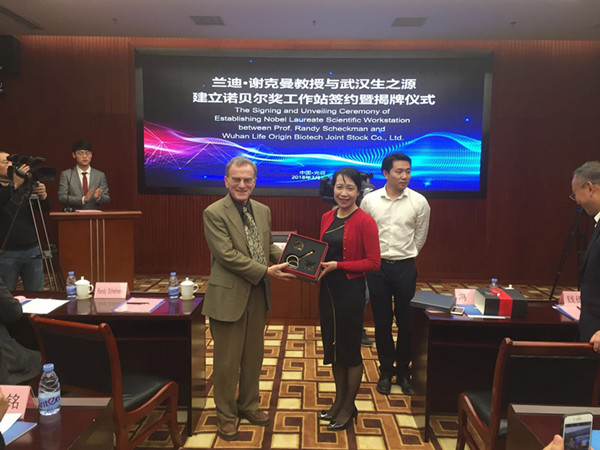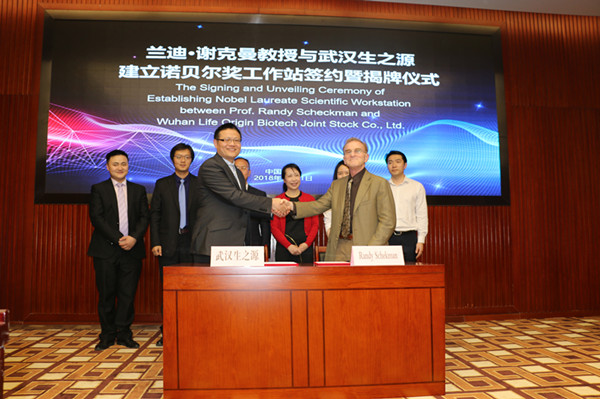 2018年3月31日,武漢生之源生物科技股份有限公司與2013年諾貝爾生理學(xué)或醫(yī)學(xué)獎得主、美國國家科學(xué)院院士、加州大學(xué)伯克利分校蘭迪•謝克曼教授在武漢東湖新技術(shù)開發(fā)區(qū)公眾服務(wù)中心4號樓新聞發(fā)布廳舉行簽約儀式,共建諾貝爾獎工作站。本次合作,蘭迪•謝克曼教授將擔(dān)任生之源首席學(xué)術(shù)顧問,為生之源提供技術(shù)指導(dǎo),雙方將圍繞“囊泡診斷研究與產(chǎn)業(yè)化”相關(guān)課題邀請其他單位共同申請國家重大科研課題,并共同完成課題研究。