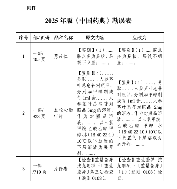 具體勘誤細節(jié)見《2025 年版〈中國藥典〉勘誤表》,確保各項操作符合藥典要求。